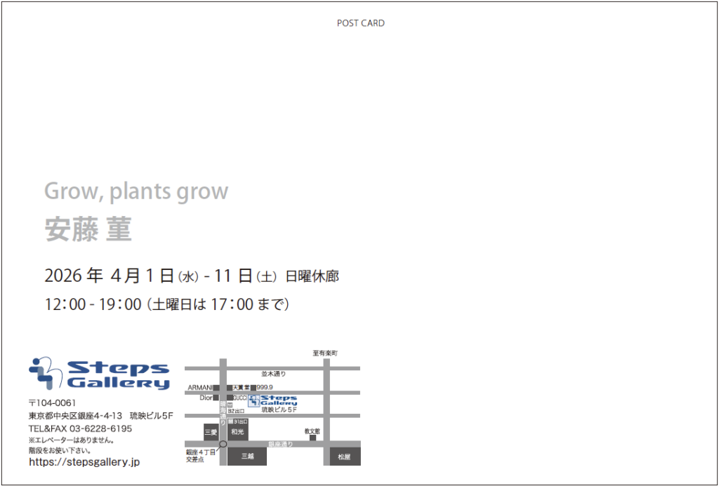 会期:4月1日(水) – 11日(土) 日曜休廊