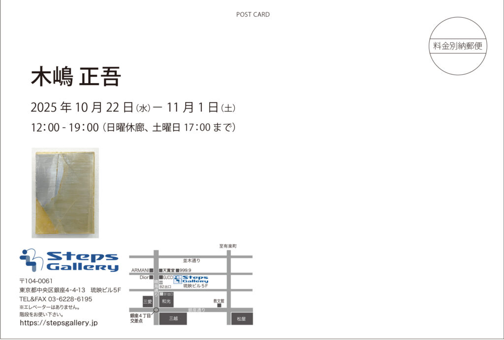 時間:12:00 – 19:00(日曜休廊、土曜日は17:00まで)