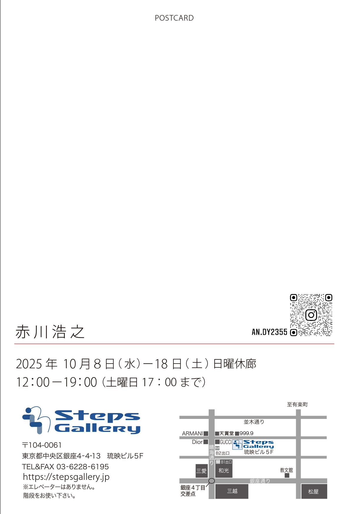 時間:12:00 – 19:00(日曜休廊、土曜日は17:00まで)