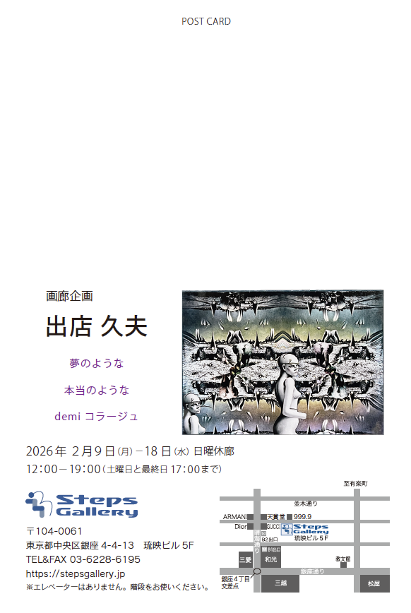 時間:12:00 – 19:00(日曜休廊、土曜日は17:00まで)